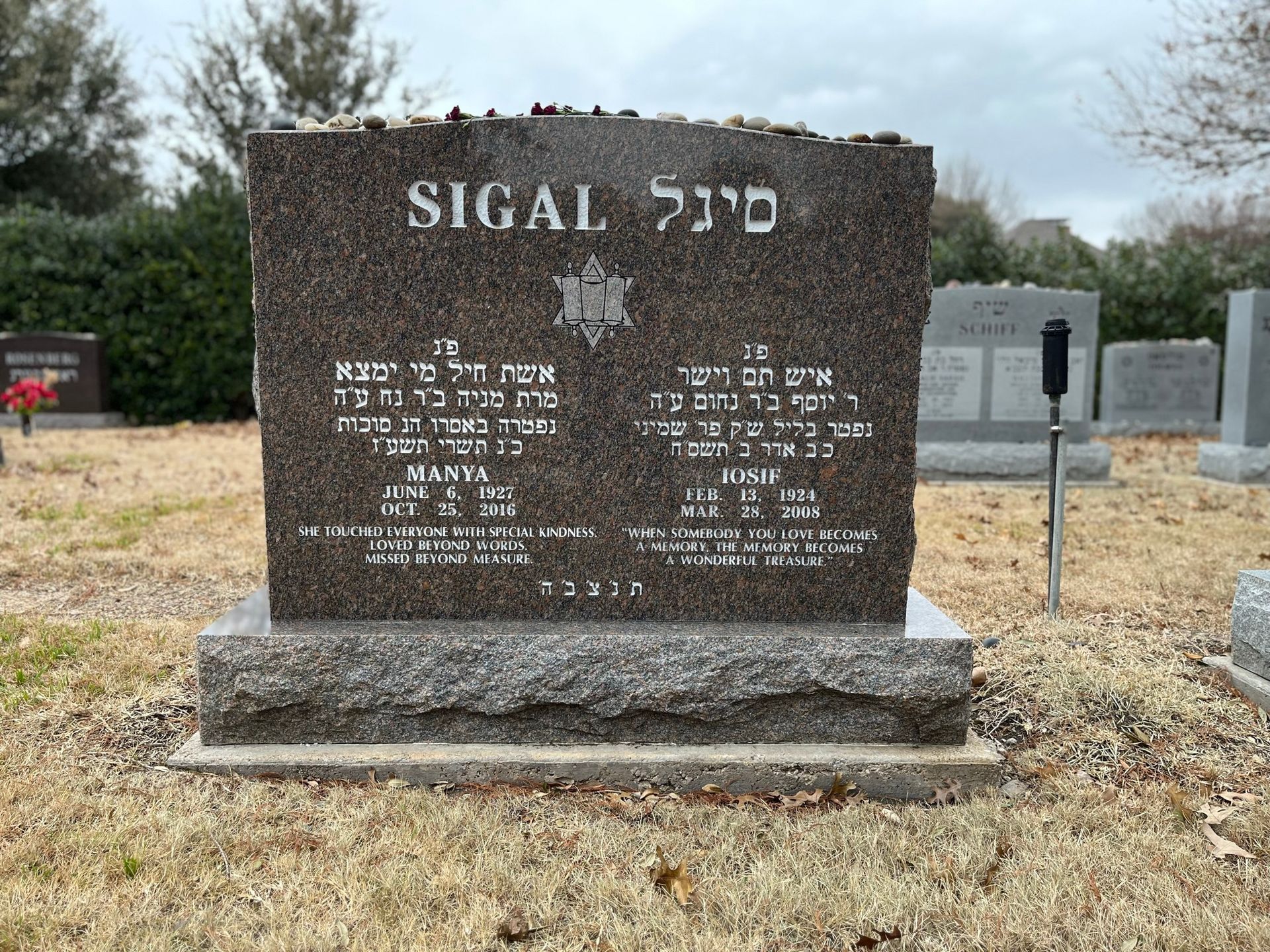 Traditional Jewish monuments typically include the deceased’s Hebrew name, their father’s (and sometimes mother’s) Hebrew name, and the traditional abbreviation תנצבה (May their soul be bound in the bond of life). At Spradling, we provide digital proofs to ensure every character and vowel is 100% accurate before carving.
