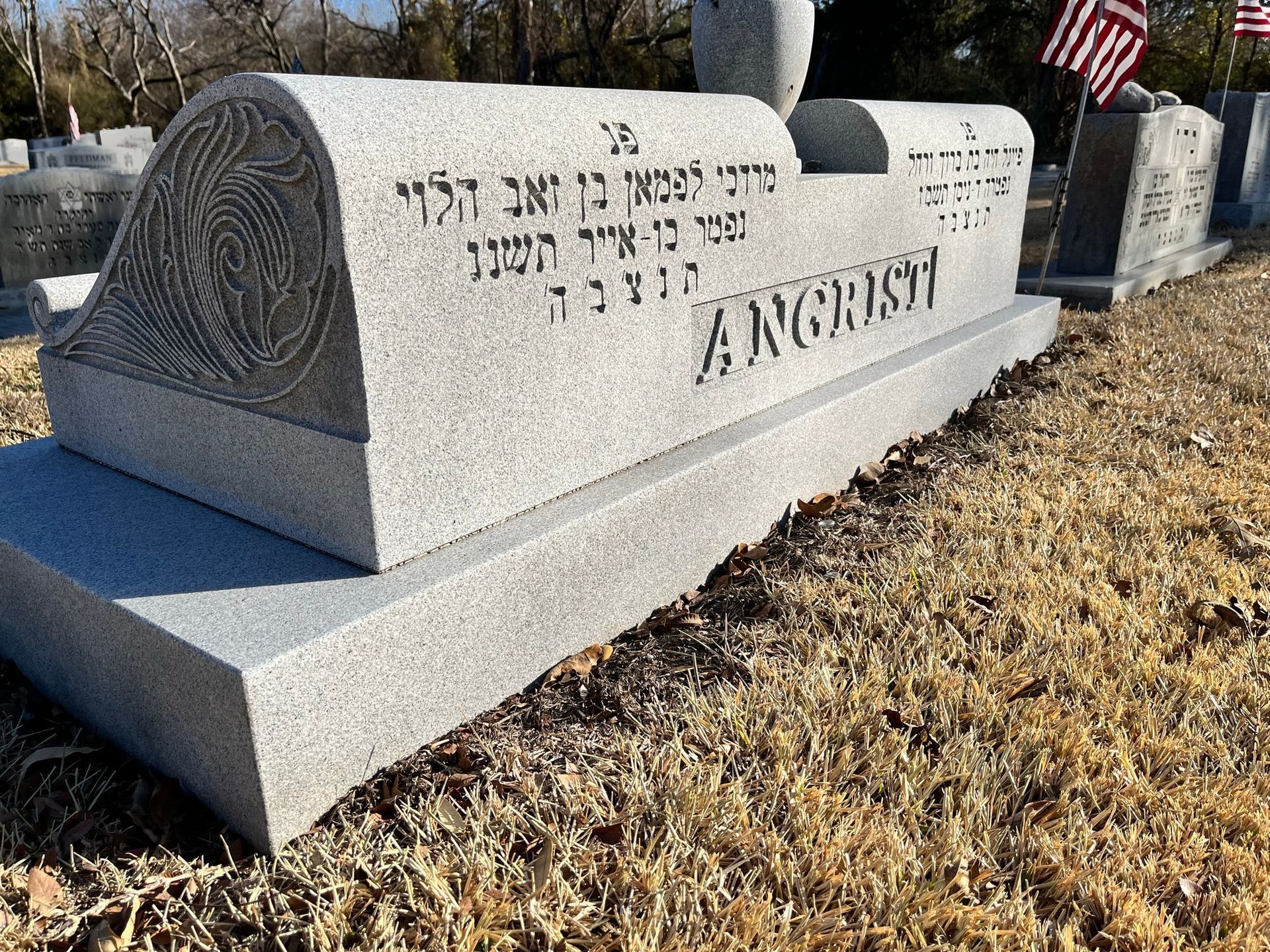 Most Jewish cemeteries or dedicated Jewish sections in DFW (like Sparkman/Hillcrest or Shearith Israel) have specific regulations regarding monument height, granite color, and the use of vases. We are experts in local cemetery compliance and will ensure your design meets all religious and physical requirements.